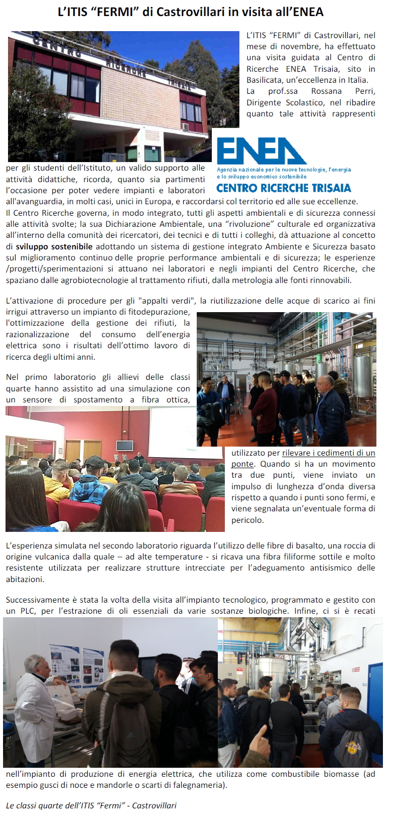 L'ITIS "Fermi" di Castrovillari in visita all'ENEA - Trisaia Pubblicato: Sabato, 14 Dicembre 2019 13:51 Marino Stampa Email Photogallery