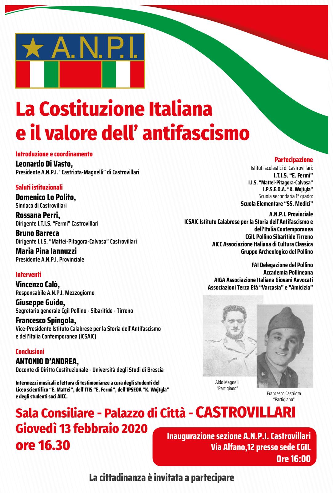 "La Costituzione Italiana e il valore dell'antifascismo" - Giovedi' 13 Febbraio 2020 Pubblicato: Mercoledì, 05 Febbraio 2020 12:50 Marino Stampa Email