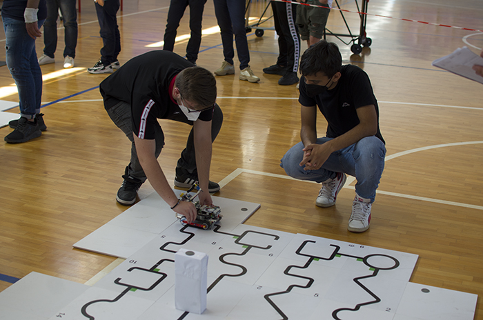 Nel corso della due giorni di festival i ragazzi del Fermi, dopo aver sapientemente spiegato il funzionamento dei loro robot ai piccoli spettatori, hanno gareggiato nelle piste della categoria Rescue Line, animando la manifestazione con un sano e stimolante spirito di competizione.
